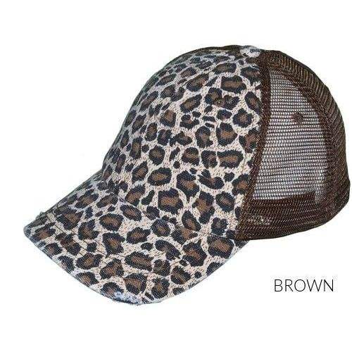 Gorra de béisbol con estampado de leopardo y moño despeinado