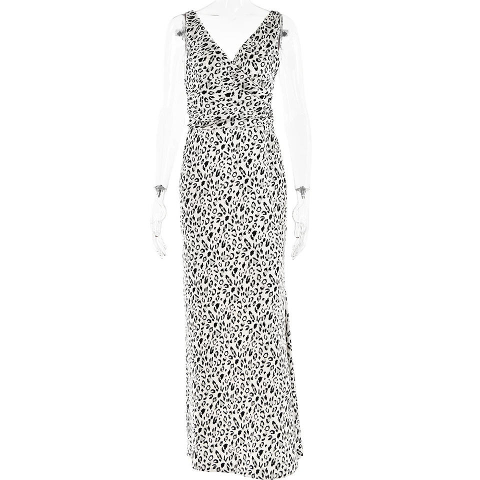 Vestido Largo de Satén con Estampado de Leopardo, Escote en V, Sin Espalda, Ajustado, para Fiesta de Gala, con Diseño de Cintura Natural y Empalmes