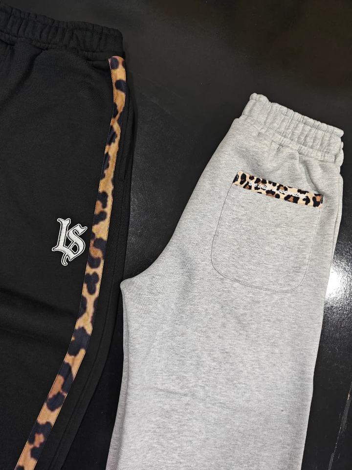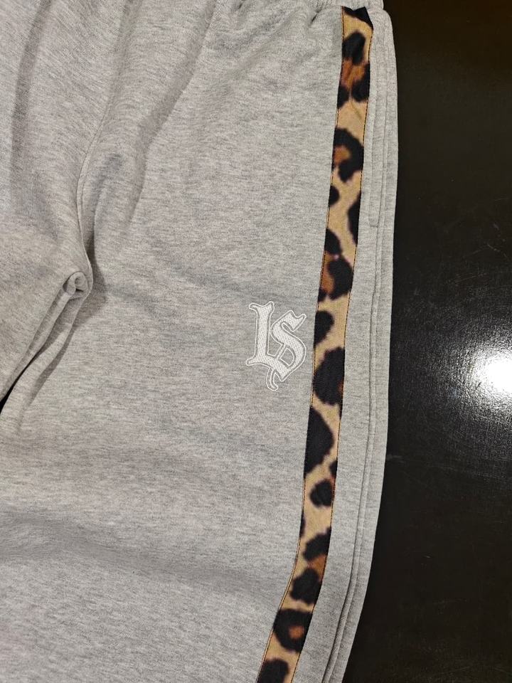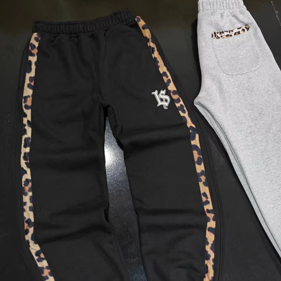 Pantalones Deportivos de Felpa 100% Algodón, con Estampado de Leopardo, Rayas Laterales de Dos Tonos, Puños Ajustables y Logotipo Bordado