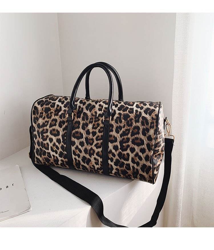 Bolsos de viaje de cuero PU con estampado de leopardo para mujer, bolsos grandes de fin de semana para pasar la noche, bolso de viaje impermeable con estampado de leopardo con correa