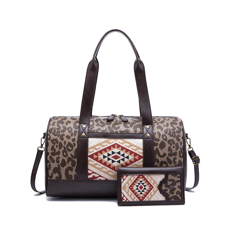 Conjunto de bolsa de viaje étnica con estampado de leopardo, gran capacidad, elegante y personalizado