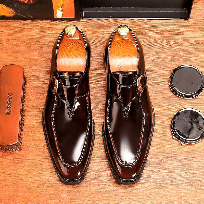 Mocasines de Hombre Leopold con Punta en Pico, de Charol Brillante, Negros, Formales, Casuales, para Boda, Transpirables y Antideslizantes