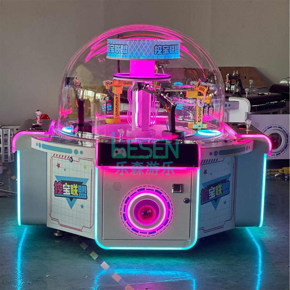 Máquina recreativa de grúa de garras Lesen personalizable para múltiples jugadores, con juego de excavación de tesoros, operada con monedas y redención de premios