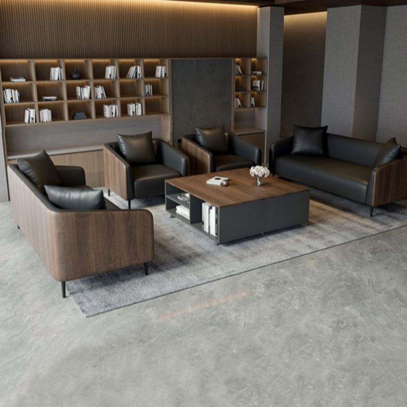 Sofá de cuero con marco de madera maciza menos Simple, muebles de oficina, sofás modulares de lujo minimalistas, conjunto de sofá de oficina