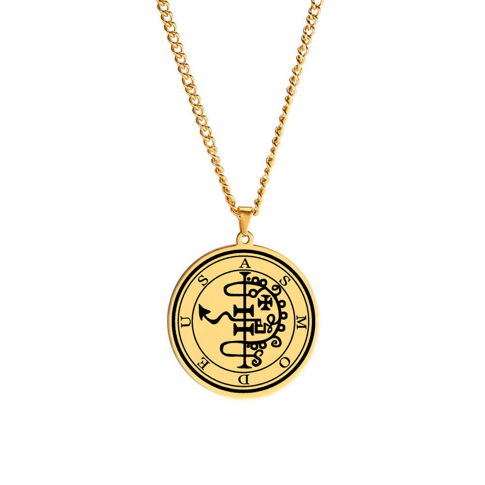 Llave Menor de Salomón, Sello del Rey Asmodeus, Amuleto de Ars Goetia, Talismán, Joyería, Collar con Colgante de Acero Inoxidable Grabado con Láser