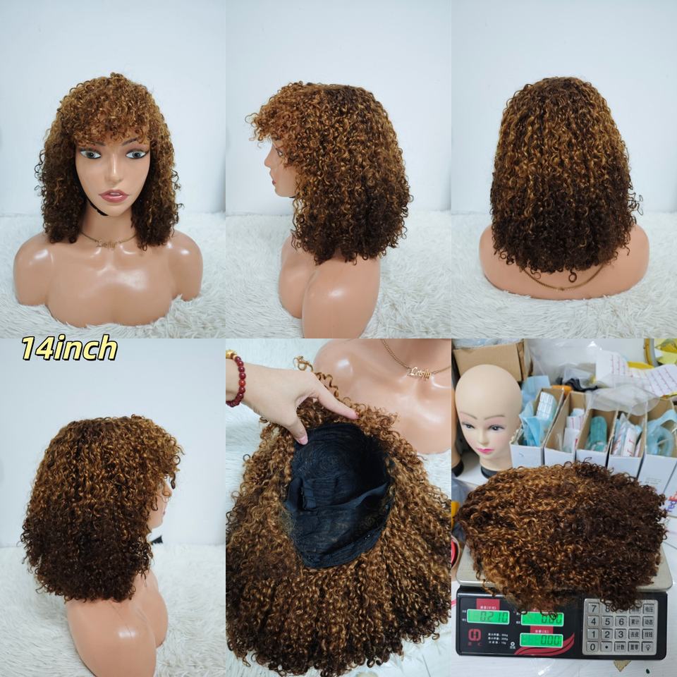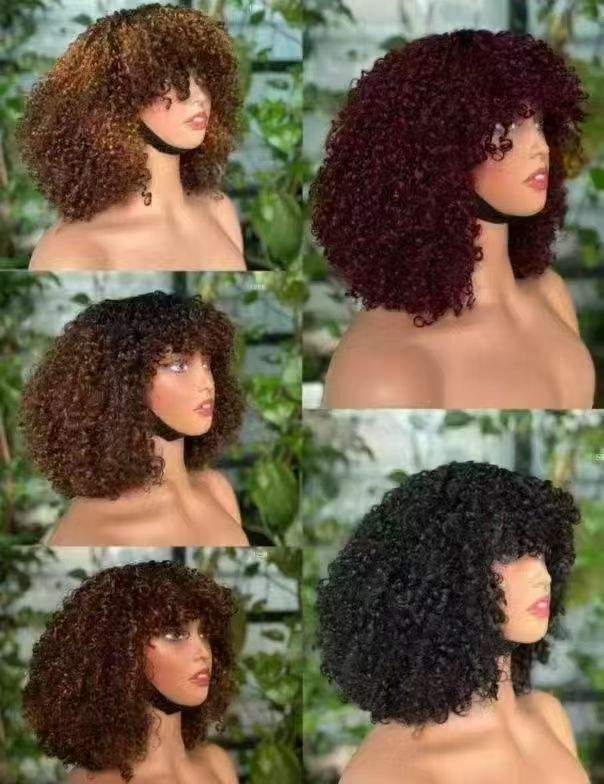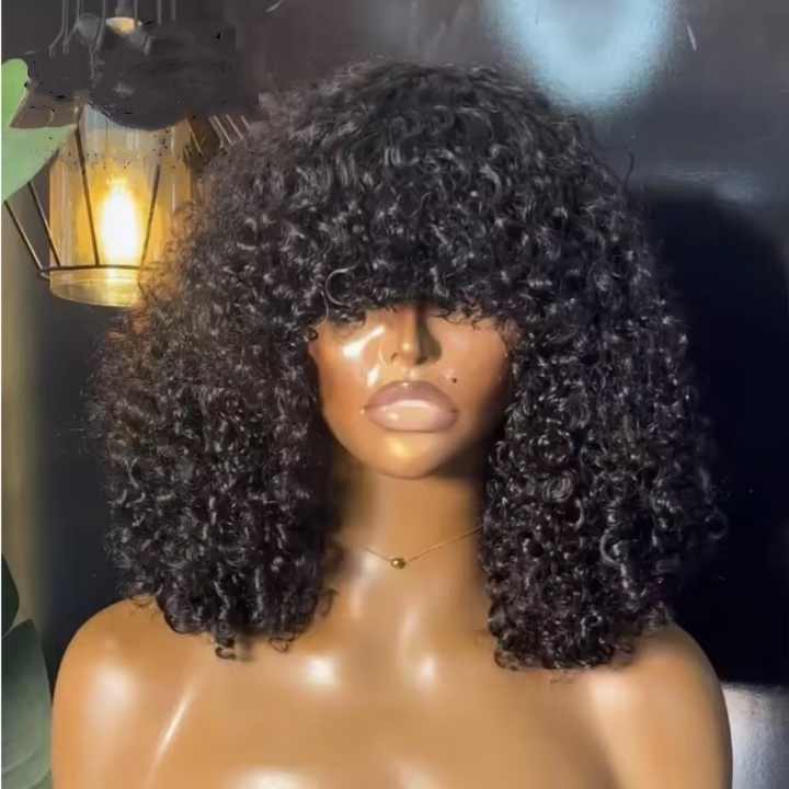 Promoción Letsfly 62$ Peluca de Cabello Humano Brasileño 100% con Flequillo y Rizos Pixie para Mujeres Negras, Densidad 250%
