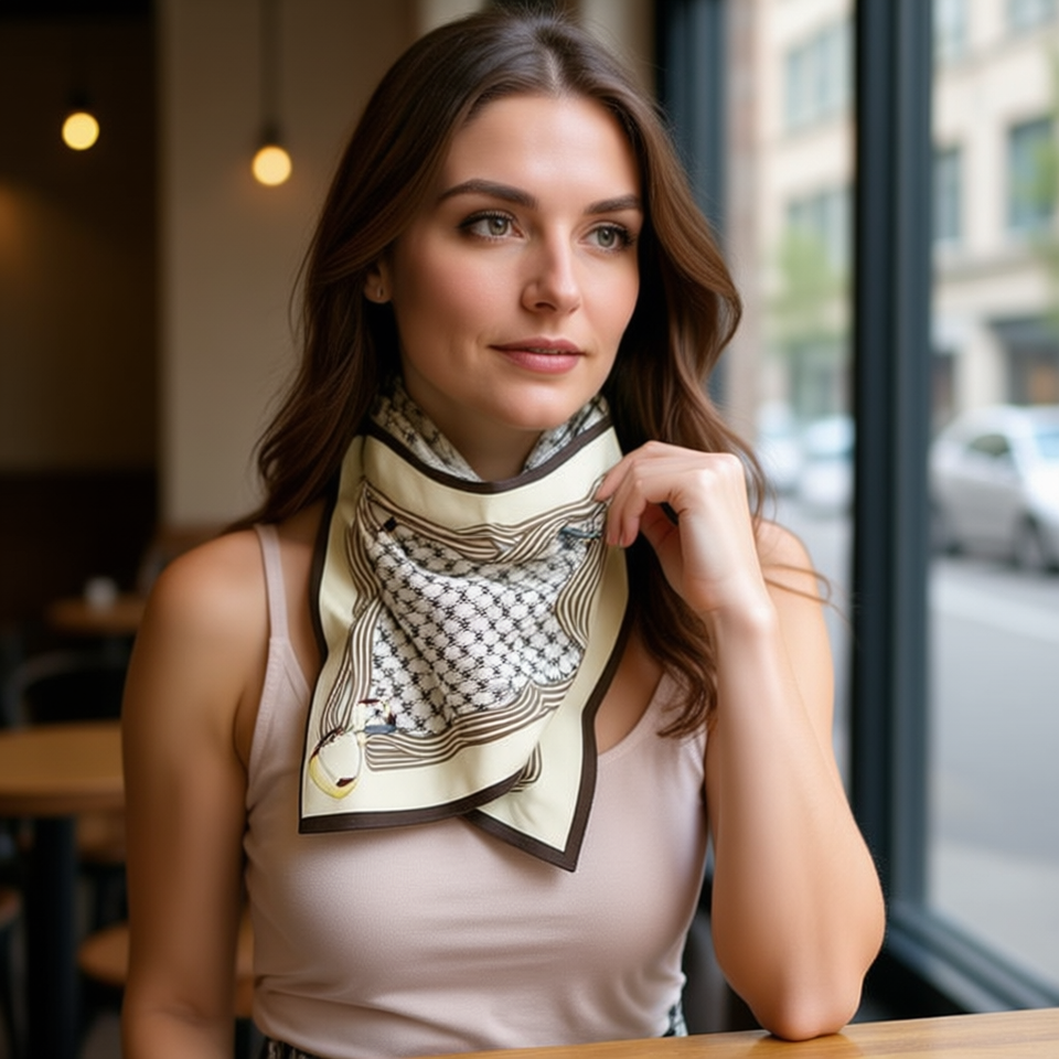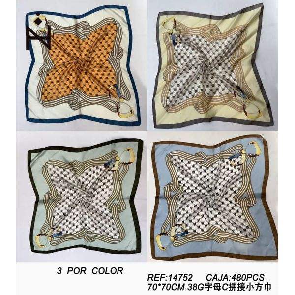 Pañuelo Cuadrado Pequeño con Parches de Letra C, 70x70cm, 38g, Accesorio de Moda para Mujer