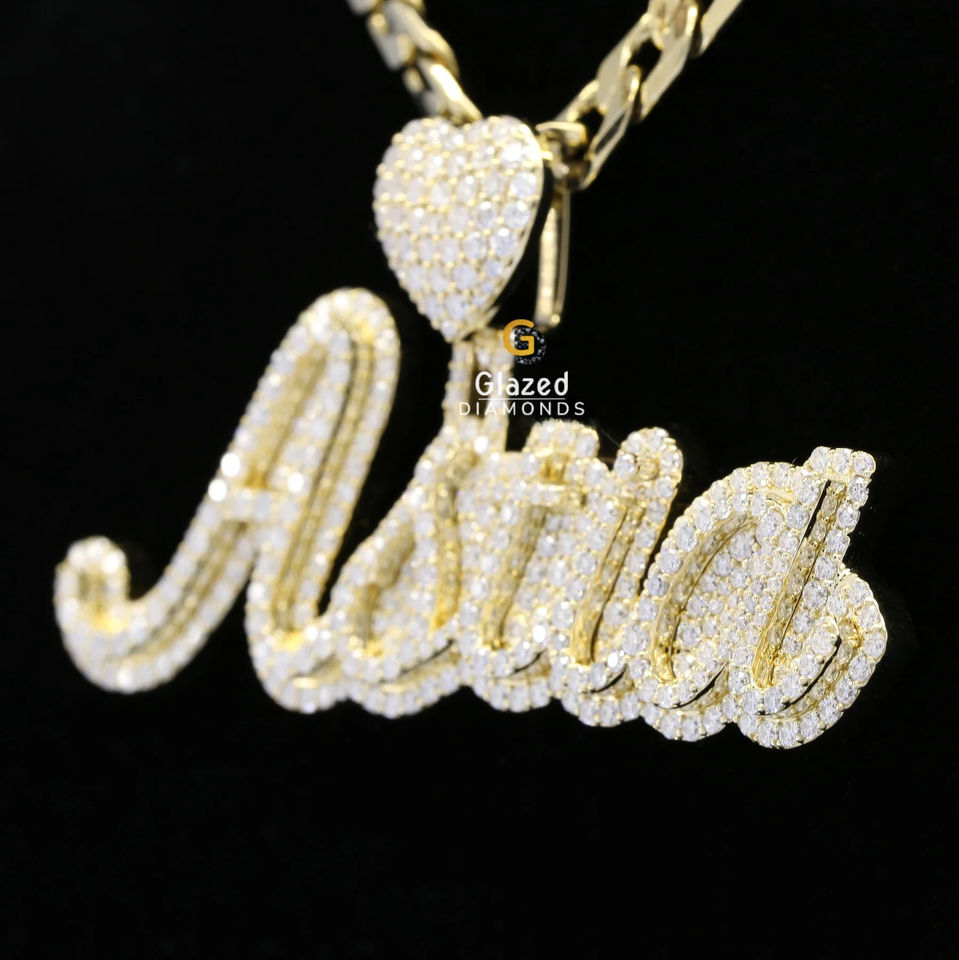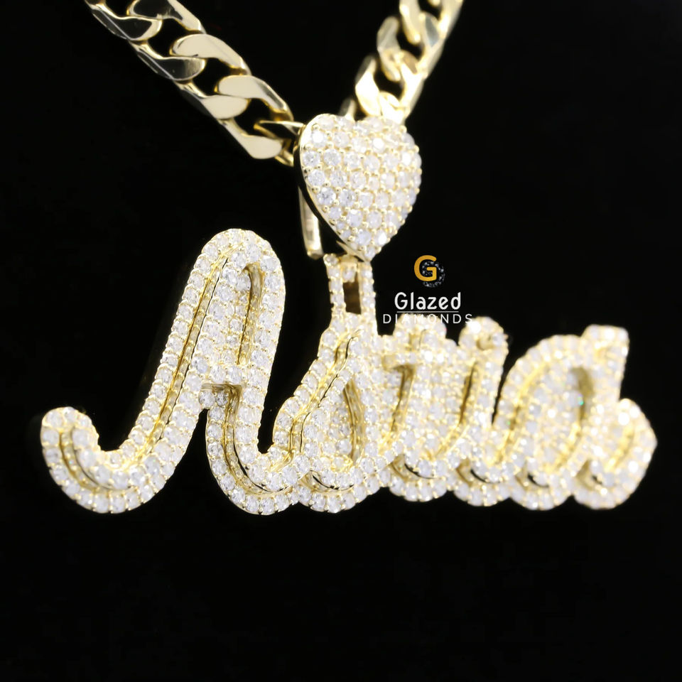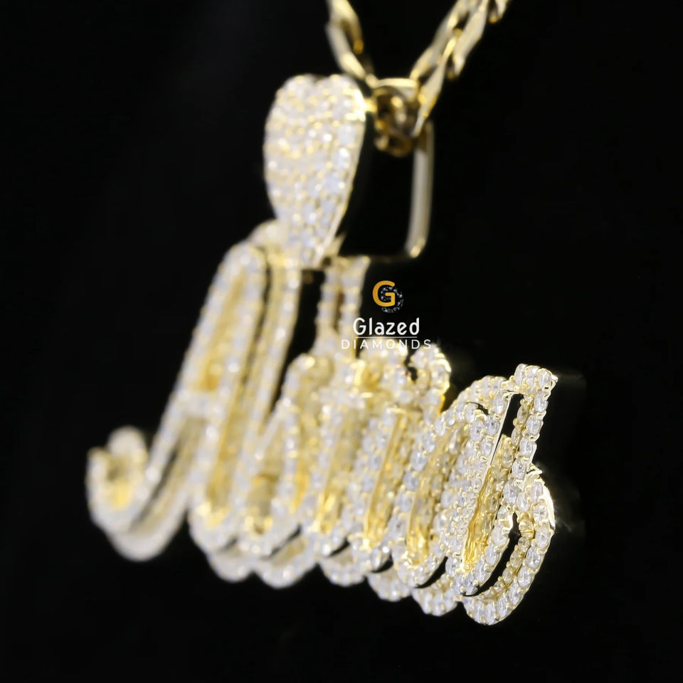 Colgante Unisex de Oro Amarillo de 10kt con 8ctw de Diamantes Moissanita de Alta Calidad en Corte Brillante Redondo, Estilo Hip Hop, Colgantes y Dijes