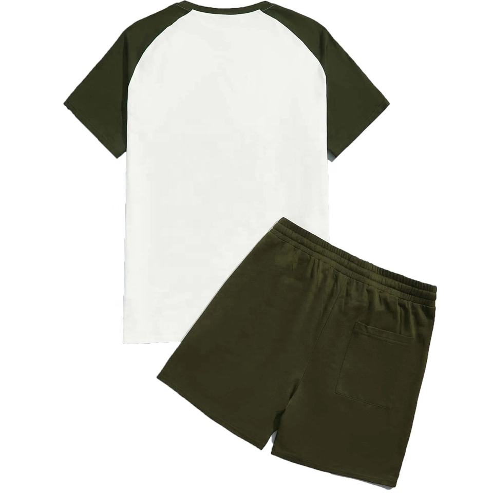 Conjunto de pantalones cortos deportivos Unisex de algodón de gran tamaño para hombre personalizado estampado de letras bloque de Color manga raglán camiseta Streetwear patrón sólido