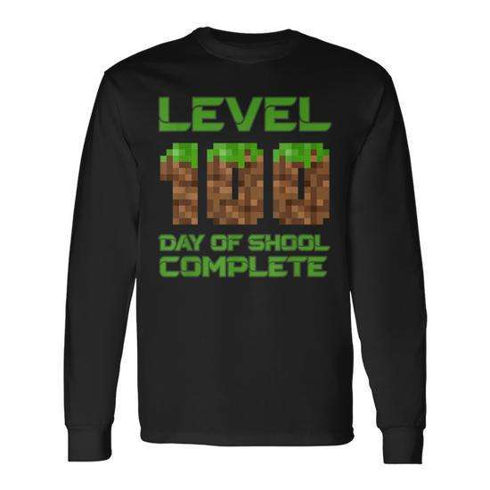 Camiseta de Manga Larga con Diseño de Videojuegos Pixelados Nivel 100 para Niños, Camiseta Promocional para Días de Clase