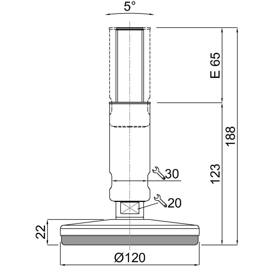 Pie nivelador 15304 en acero galvanizado con base fija – soporte ajustable para maquinaria industrial