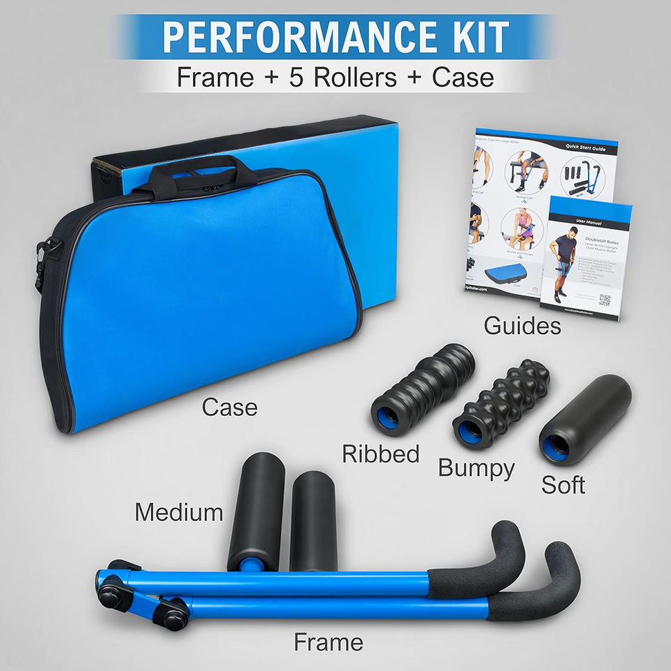 Masajeador Muscular de Presión Tipo Palanca con Cambio Rápido de Rodillos y Kit de Rendimiento con Rodillos de Espuma
