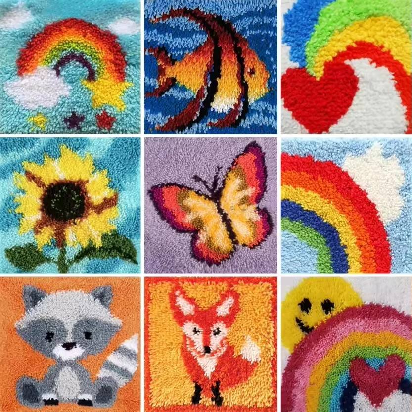 Lewei 3D bordado pequeño cuadrado alfombra cojín 1mm grueso mano gancho Material Kit venta al por mayor Color impreso alfombra Material Kit