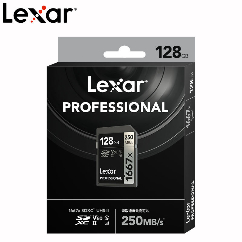 Tarjeta de Memoria Lexar 1667 X Pro de Alta Velocidad 250 MB/s V 60, Tarjeta SD UHS II de 256 GB, Tarjeta de Memoria SD 4K HD para Videocámara