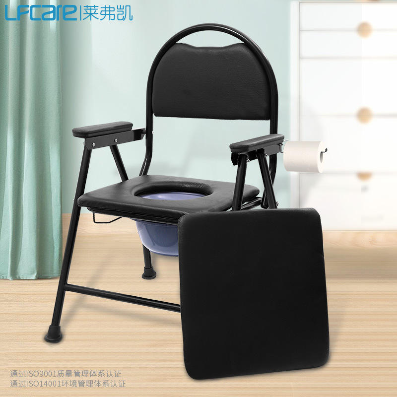 Silla de inodoro plegable Lfcare con asiento para personas mayores, taburete de baño portátil con reposabrazos y respaldo
