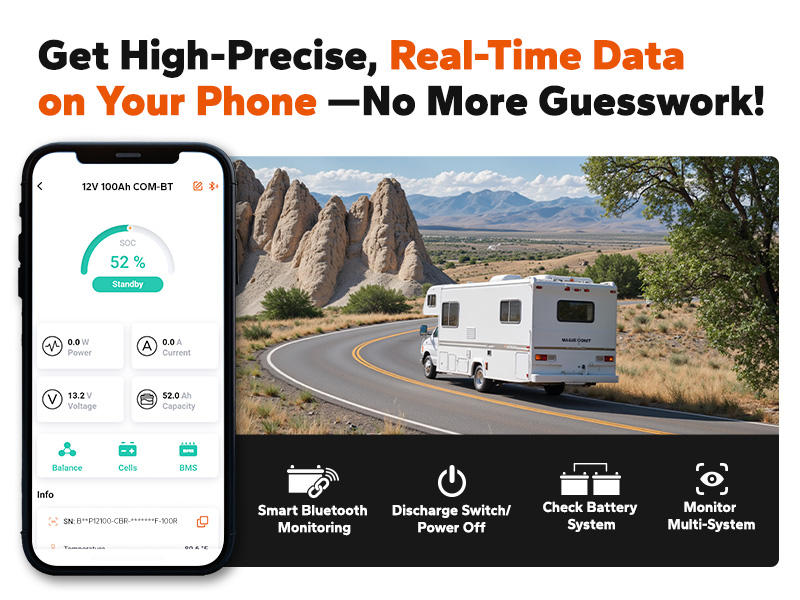 Sistema de Alimentación LiTime para Parar la Energía, Batería Inteligente ComFlex LiFePO4 de 12.8V 100Ah con Bluetooth para Comunicación, +4000 Ciclos, Energía Solar