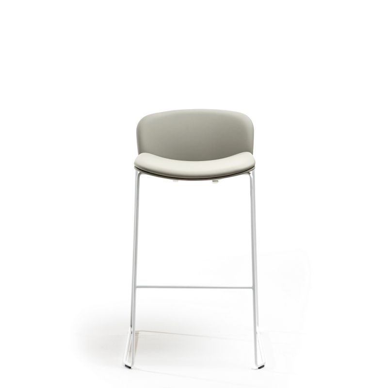 Taburete Apilable Libera de 760 mm, Totalmente Tapizado con Diseño Moderno y Minimalista, Asiento de Tela Suave, Estructura de Madera Blanca, Base de Trineo