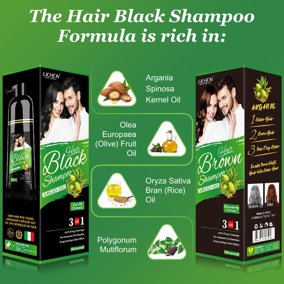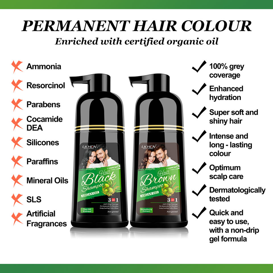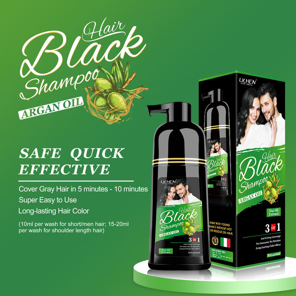 Lichen champú mágico de teñido rápido en 5 minutos, cobertura de canas para cabello negro