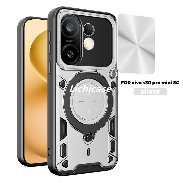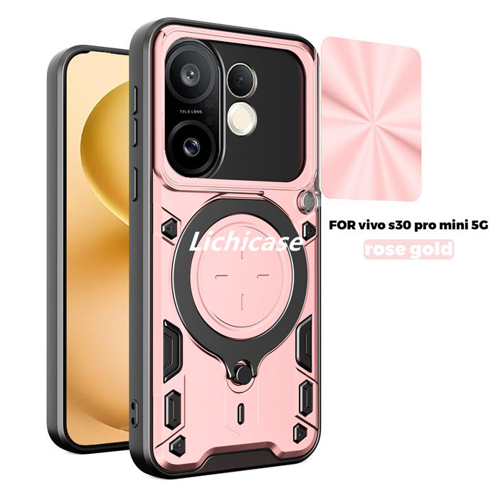 Cubierta de protección de lente de cámara deslizante con textura de CD Lichicase para Vivo Y31 Y21D funda de teléfono con armadura magnética
