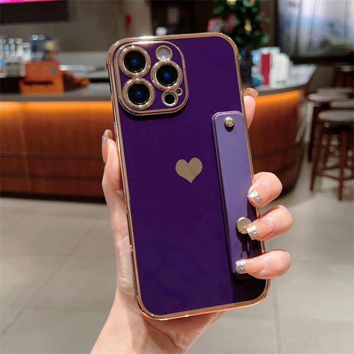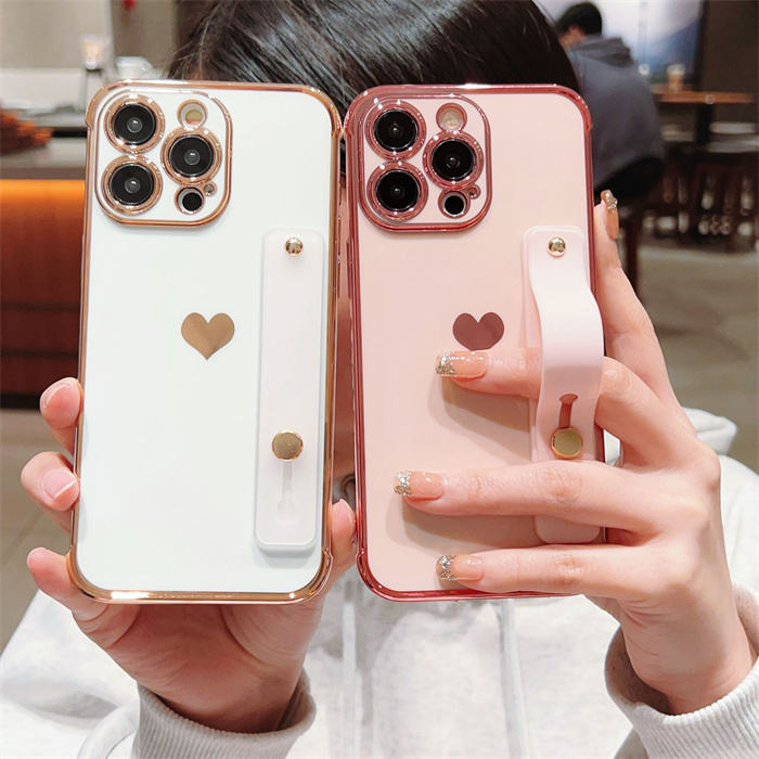 Funda para teléfono con correa para la muñeca, diseño de corazón y colores pastel.