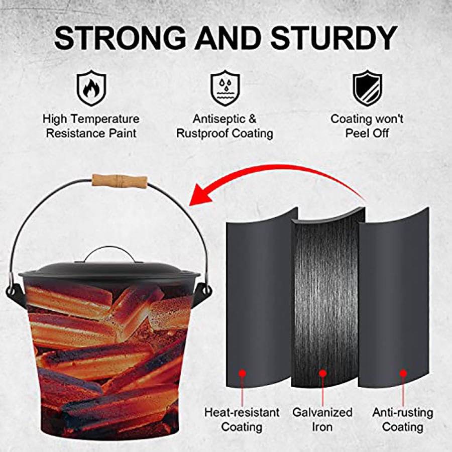 Juego de Accesorios para Chimeneas con Cubo para Cenizas, Incluye Pala, Cepillo de Mano, para Chimenea, Fogata, Estufa de Leña, Cubo de Metal para Cenizas de 10 L