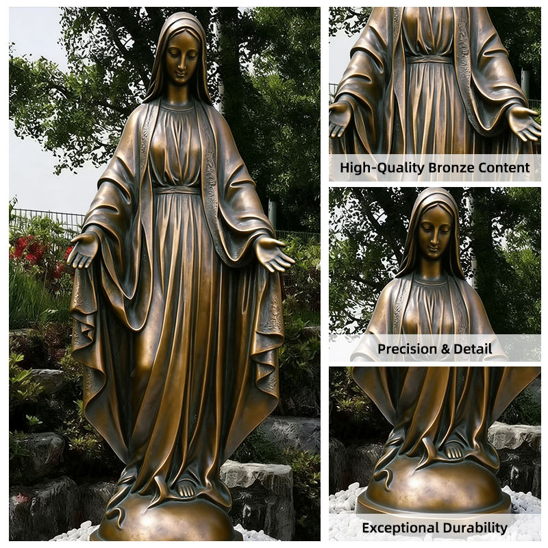 Escultura de Bronce de la Virgen María a Tamaño Real Personalizada, Pose de Oración, Decoración Religiosa para Interiores