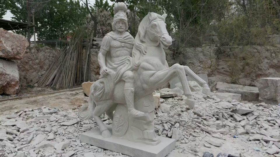 Estatua samurái De tamaño real, piedra De mármol y granito Natural, armadura De caballero europeo y Taille De Grande