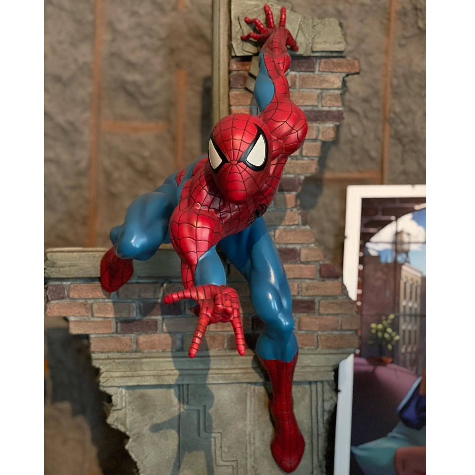 Estatua de Spider-Man de tamaño real, artesanía de resina, personaje de película invertida, escultura de Spider-Man, escultura de araña suspendida de fibra de vidrio