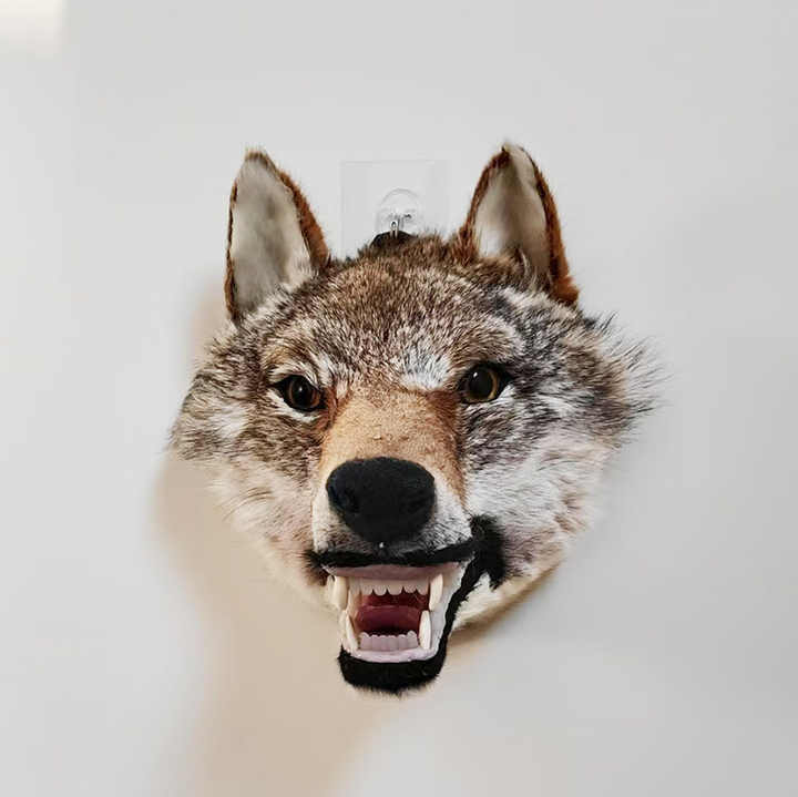 Montaje de cabeza de lobo de tamaño real, decoración de pared de cuero de imitación hiperrealista, certificado no relleno, cueva de hombre, película de terror, regalo de caza
