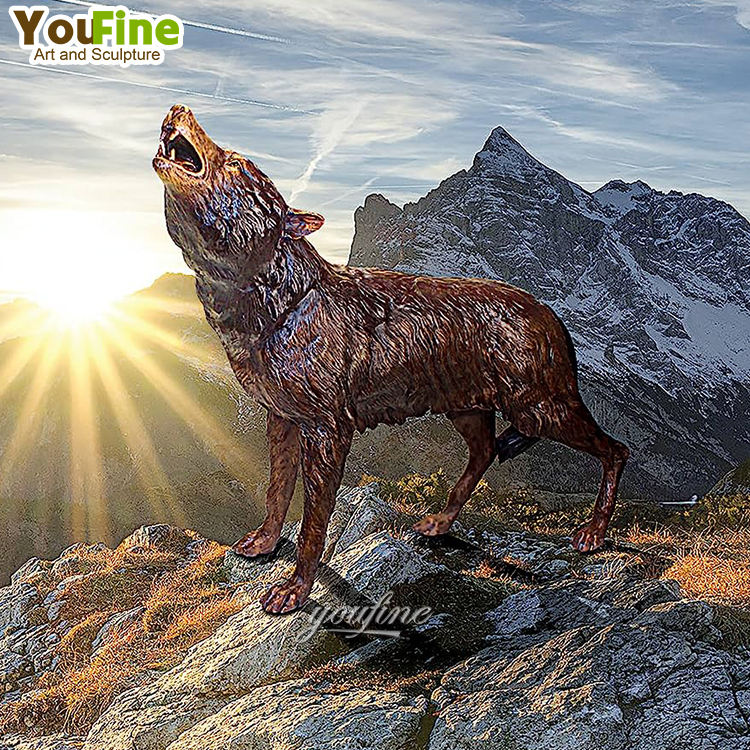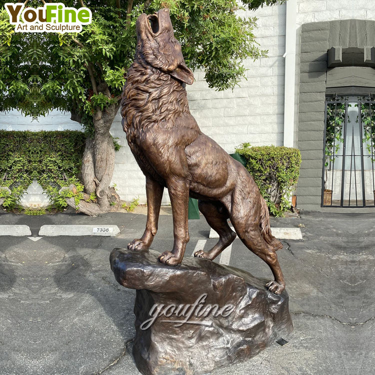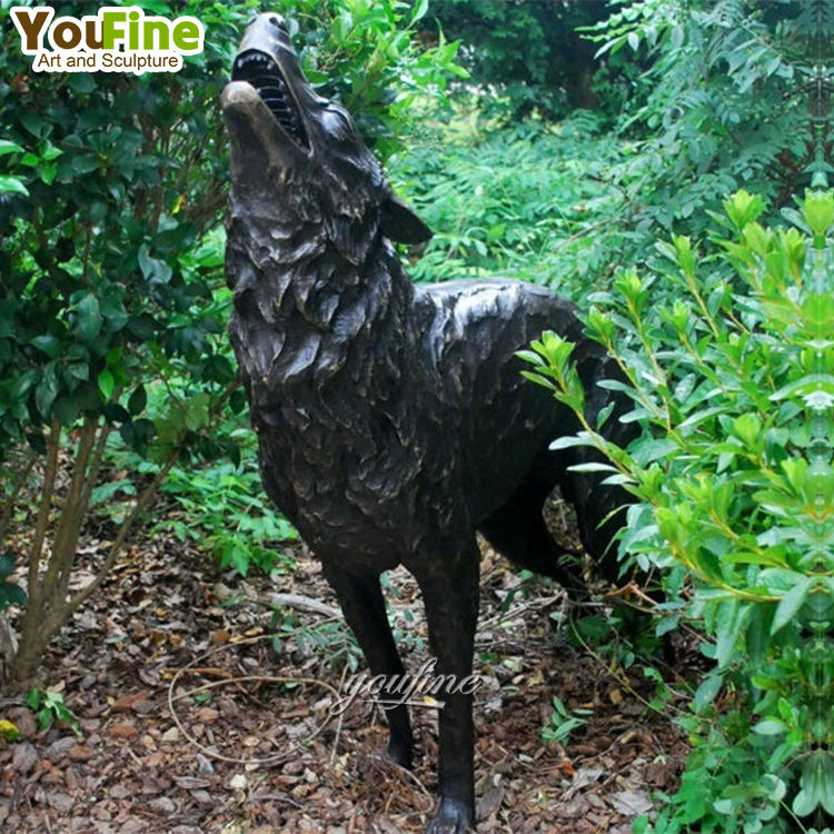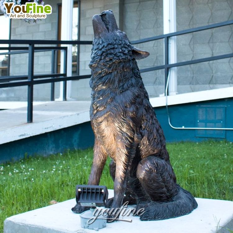 Tamaño real Lobo Aullando Luz De Luna Escultura Loup Bronce