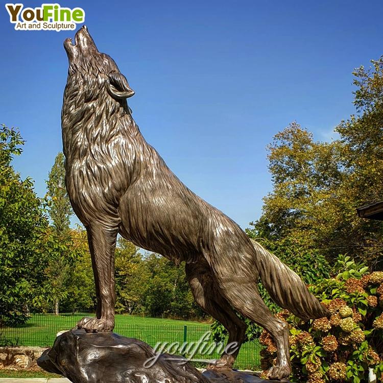 Tipo:Tamaño natural Wolf Howling Moonlight Escultura Loup Bronce