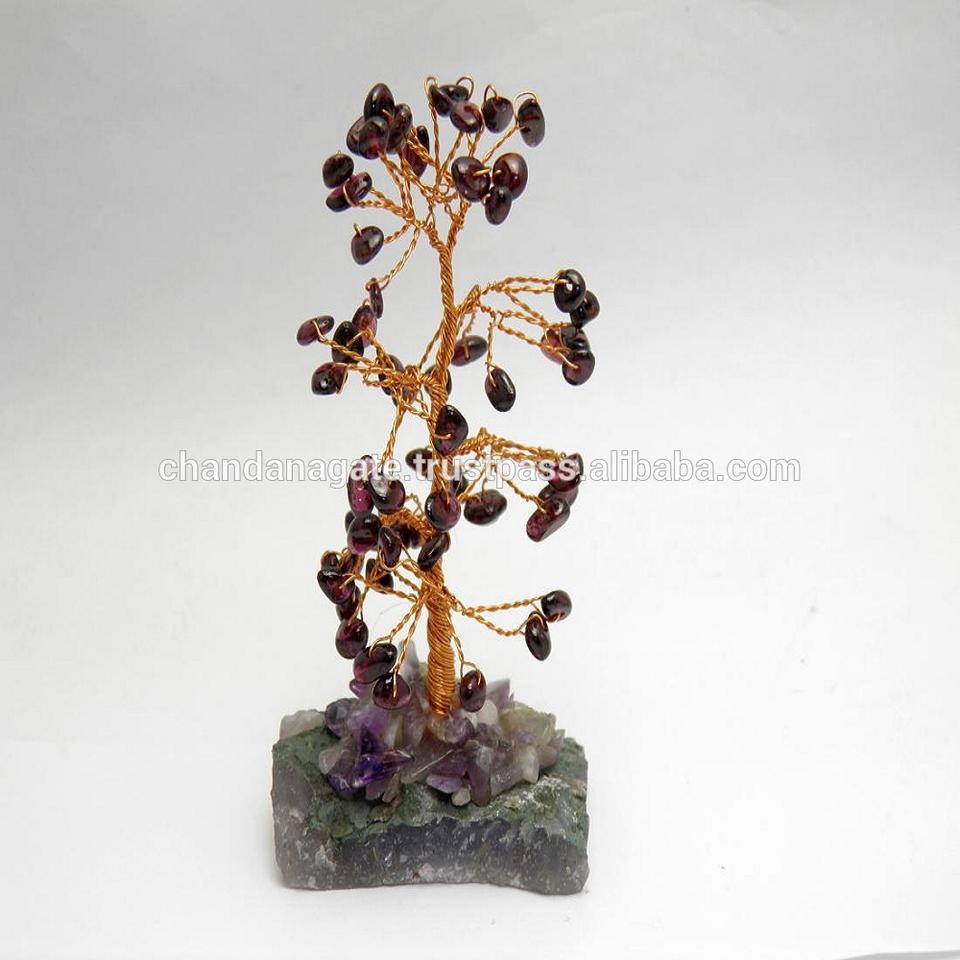 Árbol DE LA VIDA granate piedra natural piedra potente musgo ágata rebanada soporte cristal curación decoración para decoración regalos