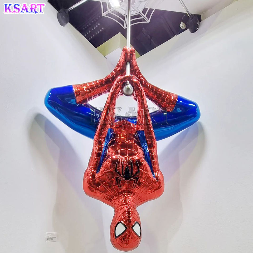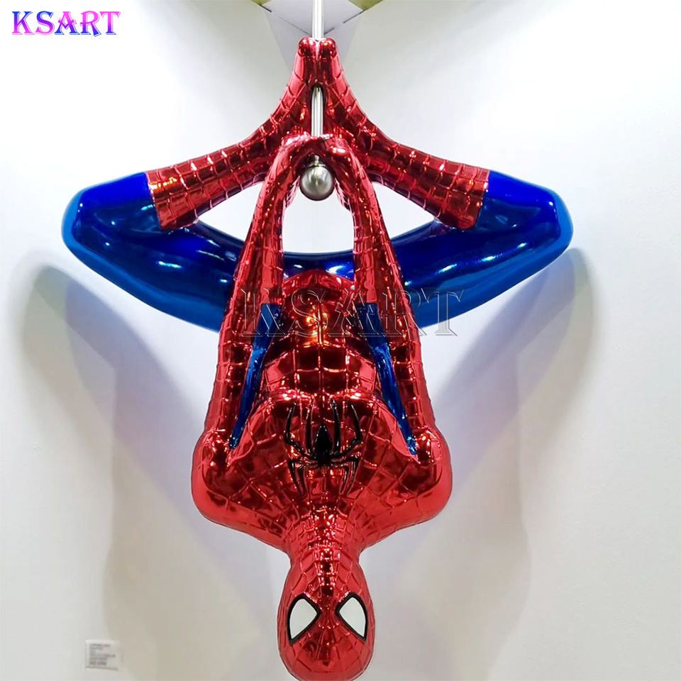 Estatua de Spider-Man de Tamaño Real, Escultura de Resina Pintada a Mano, Arte de Interior Coleccionable, Manualidad de Spider-Man Suspendido