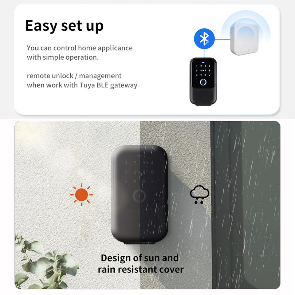 Lifelibero Tuya BLE Smart Home Key Lock Caja DE SEGURIDAD impermeable para Airbnb Real Estate Electronic Key Case Huella digital Pin Code Wood