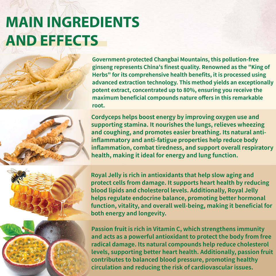 Ingrediente principal:Polvo del suplemento, Extracto de ginseng