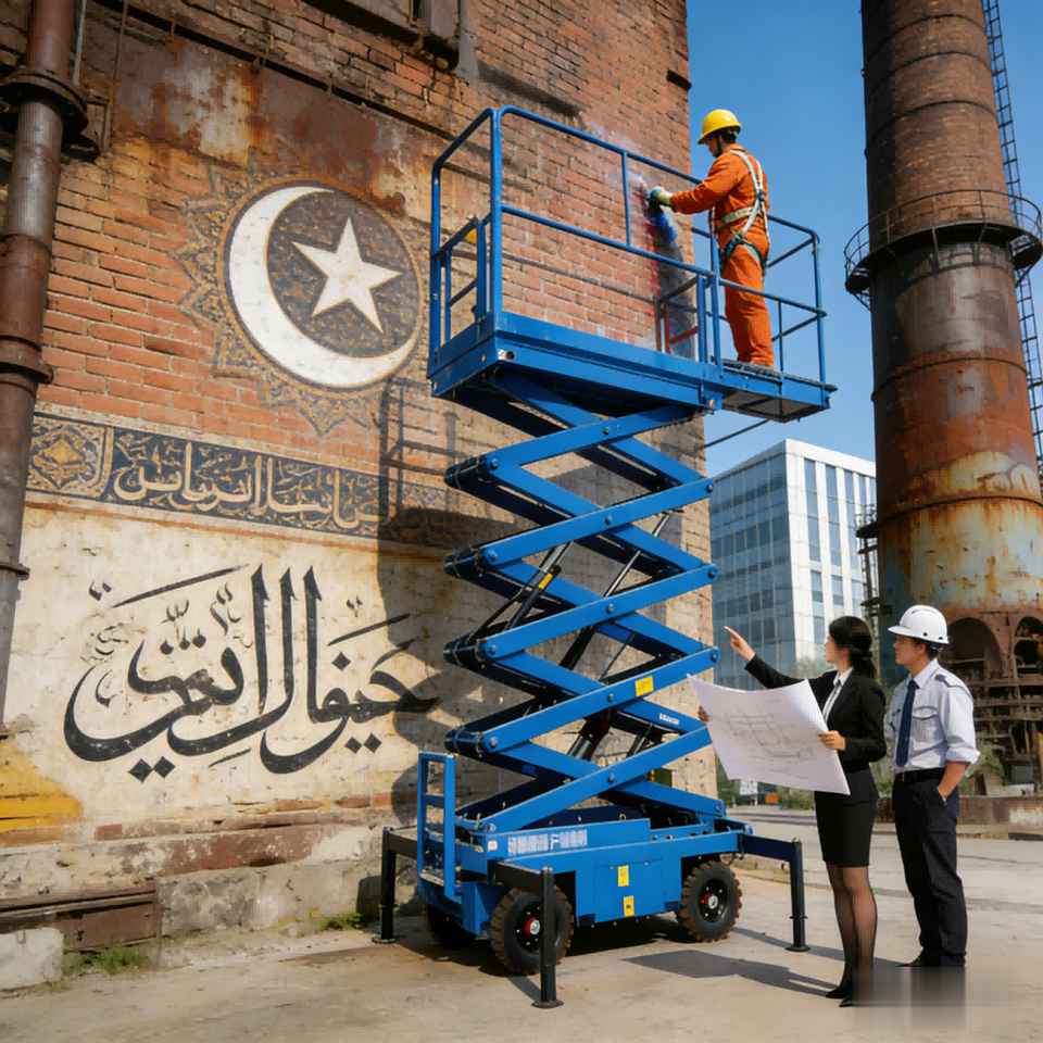 Plataforma elevadora de tijera autopropulsada de 8 m, eléctrica, para trabajos aéreos, elevación, tracción y posicionamiento, en venta.