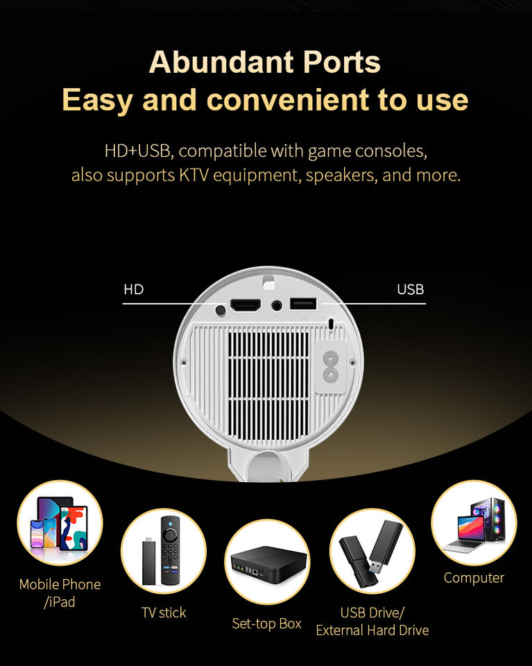 Proyector Inteligente Android de 100 Pulgadas con Diseño de Gimbal Giratorio y Elevador, Mini 4k con Descargas de Aplicaciones para Cines en Casa y Reuniones de Oficina