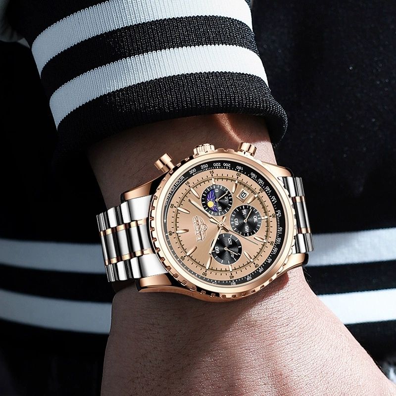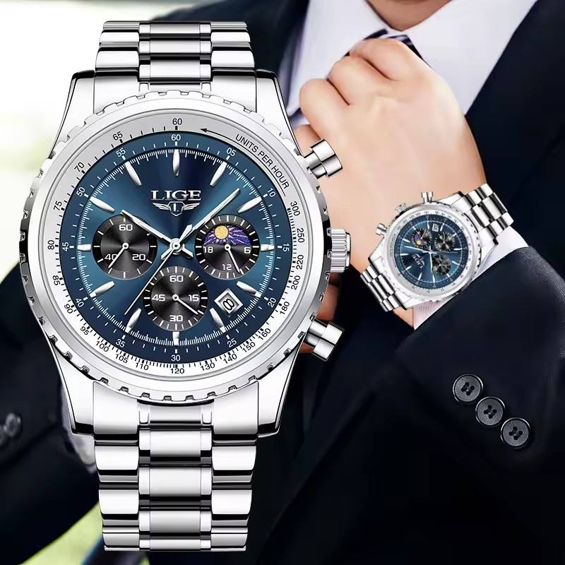 Característica:Fecha automática, Cronógrafo, Calendario completo, Fase lunar, Resistente al agua, Manos luminosas, Resistente a los golpes