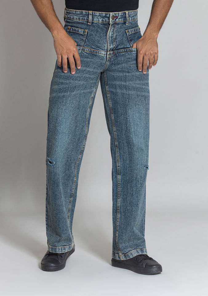 Pantalones Vaqueros de Moda para Hombre, Color Azul Claro, Pierna Ancha, Diseño de Diseñador, 4 Bolsillos, Transpirables, Corte Recto