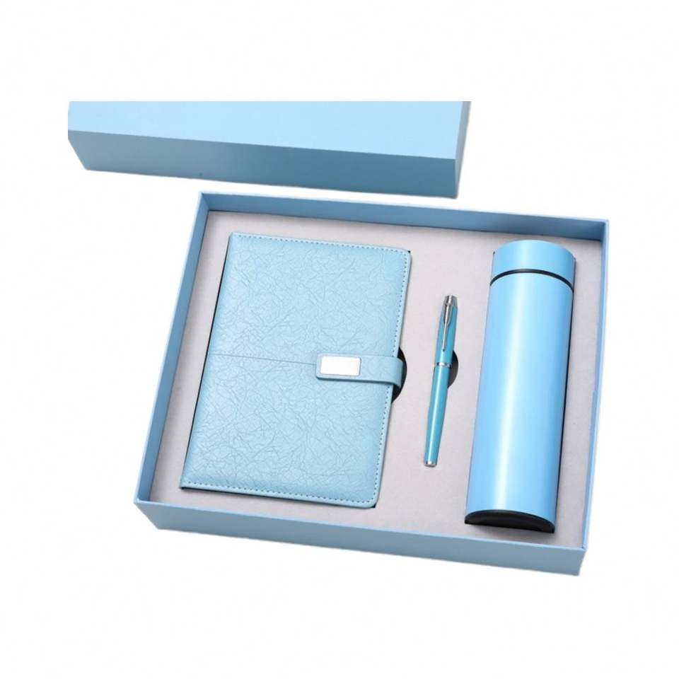 Set de Cuaderno Azul Claro, Estilo Moderno y Simple, Alta Estética, Regalo Corporativo para Oficina, Impresión Tipográfica con Logotipo Personalizado