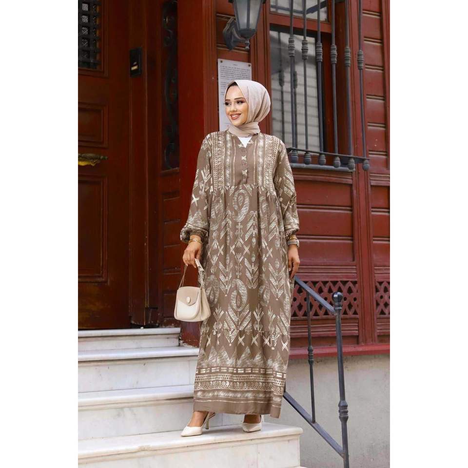 Vestido informal de viscosa con detalles de medio botón marrón claro