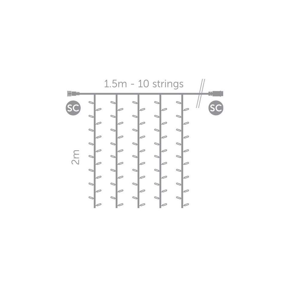 Light Creations Simply-connect PRO LINE-Extensión de luz de cortina-LED-1,5x2 m - 220 lámparas blancas cálidas-cable blanco-230 V