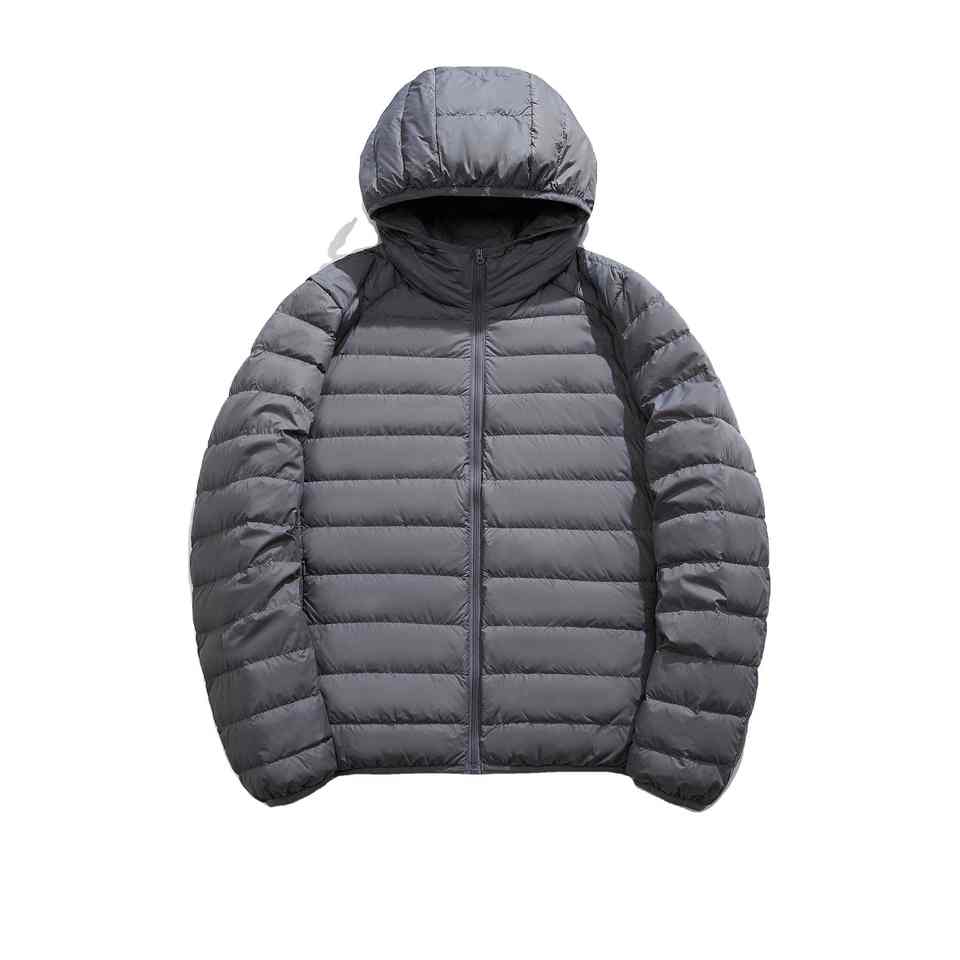 Chaqueta larga acolchada de algodón para hombre, cuello levantado con capucha, logotipo frontal, impermeable, a prueba de viento, informal, de invierno