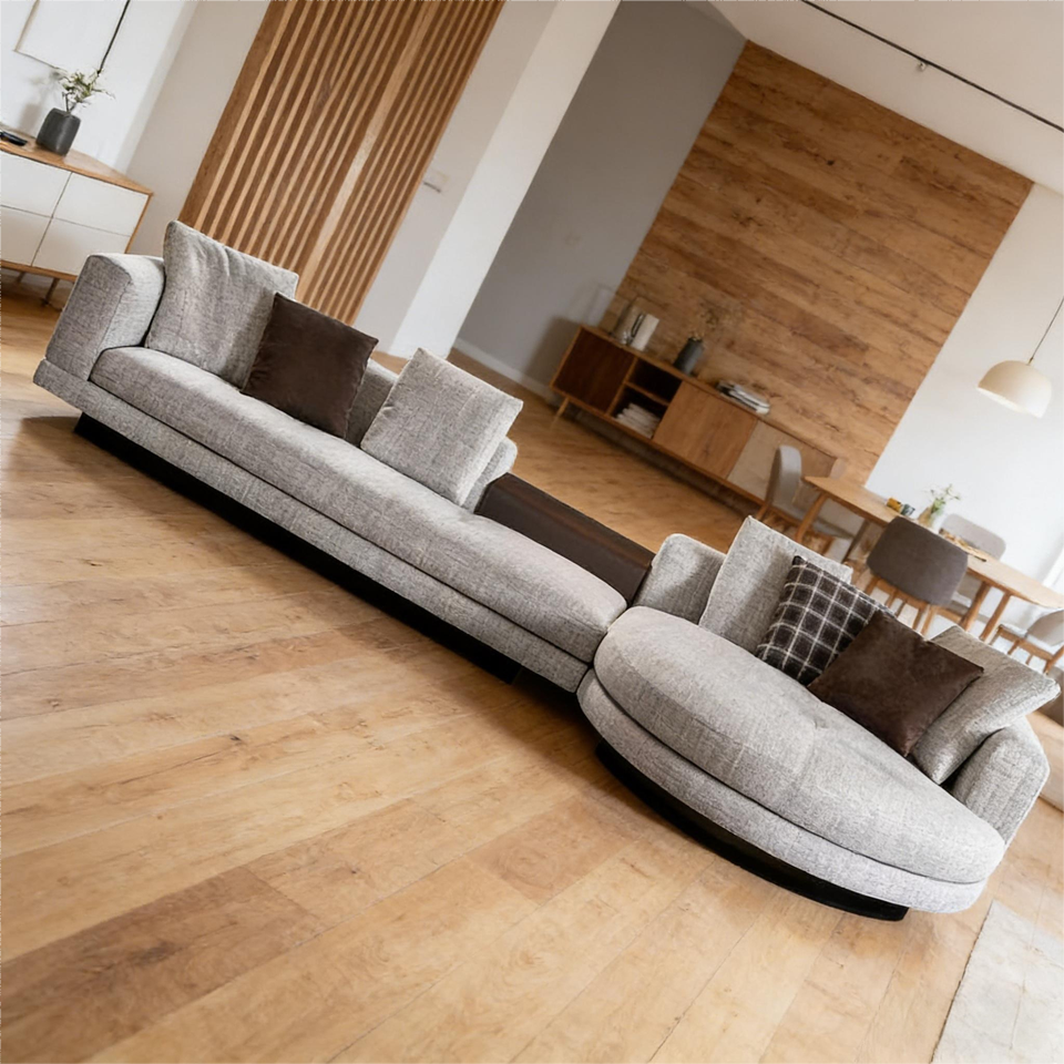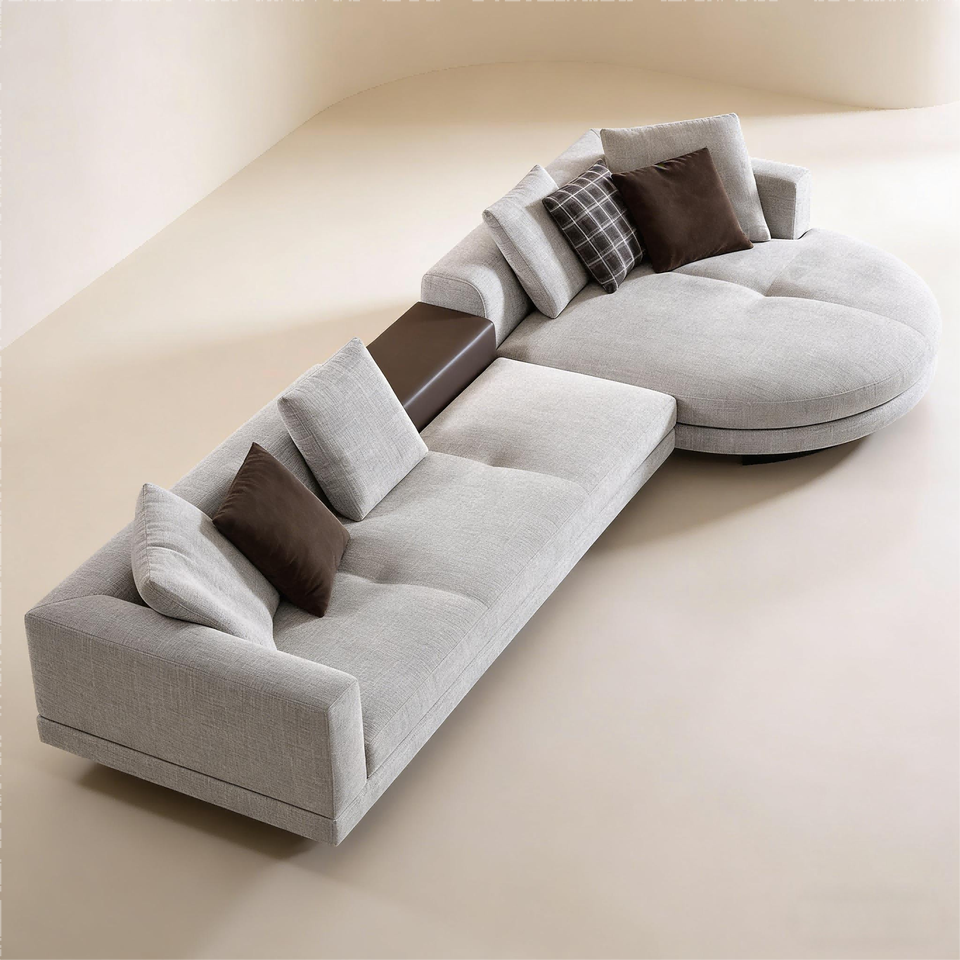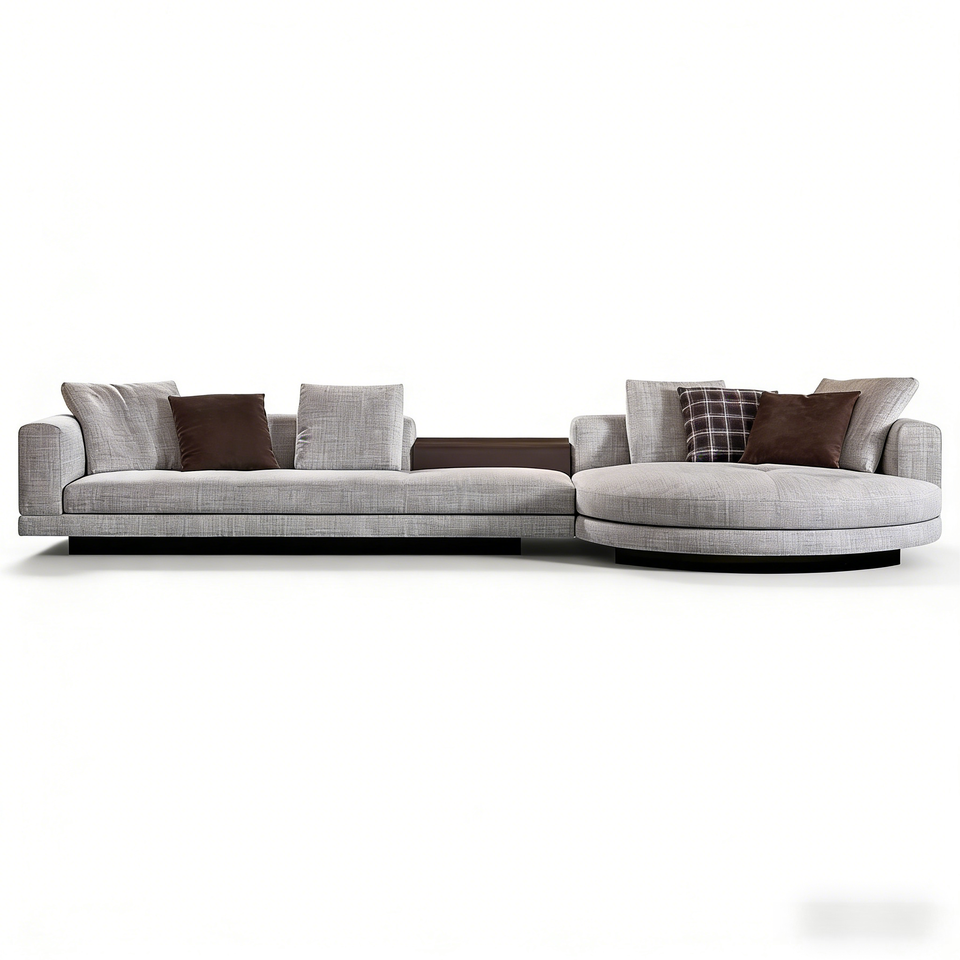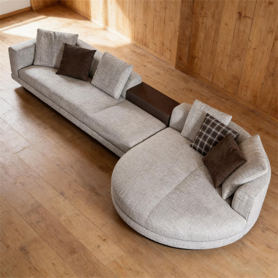 Sofá Modular Curvo de Tela Gris Claro, Estilo Moderno y Minimalista, Sofás para Sala de Estar, Cojines con Bloques de Color que Enriquecen las Capas Visuales
