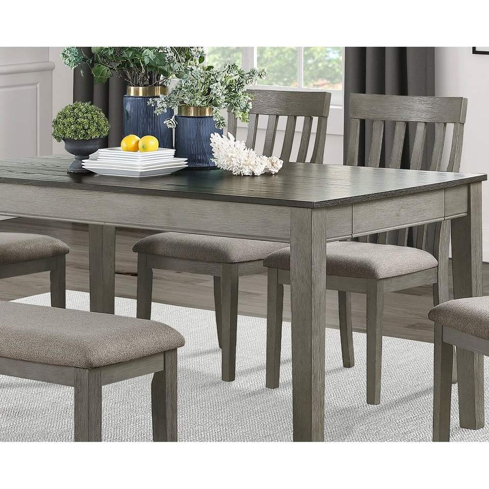 Juego de Comedor de 5 Piezas con Acabado Gris Claro, Estilo Rústico Casual, Muebles de Madera Contemporáneos, Incluye Mesa de Comedor con Cajones y 4 Sillas Laterales