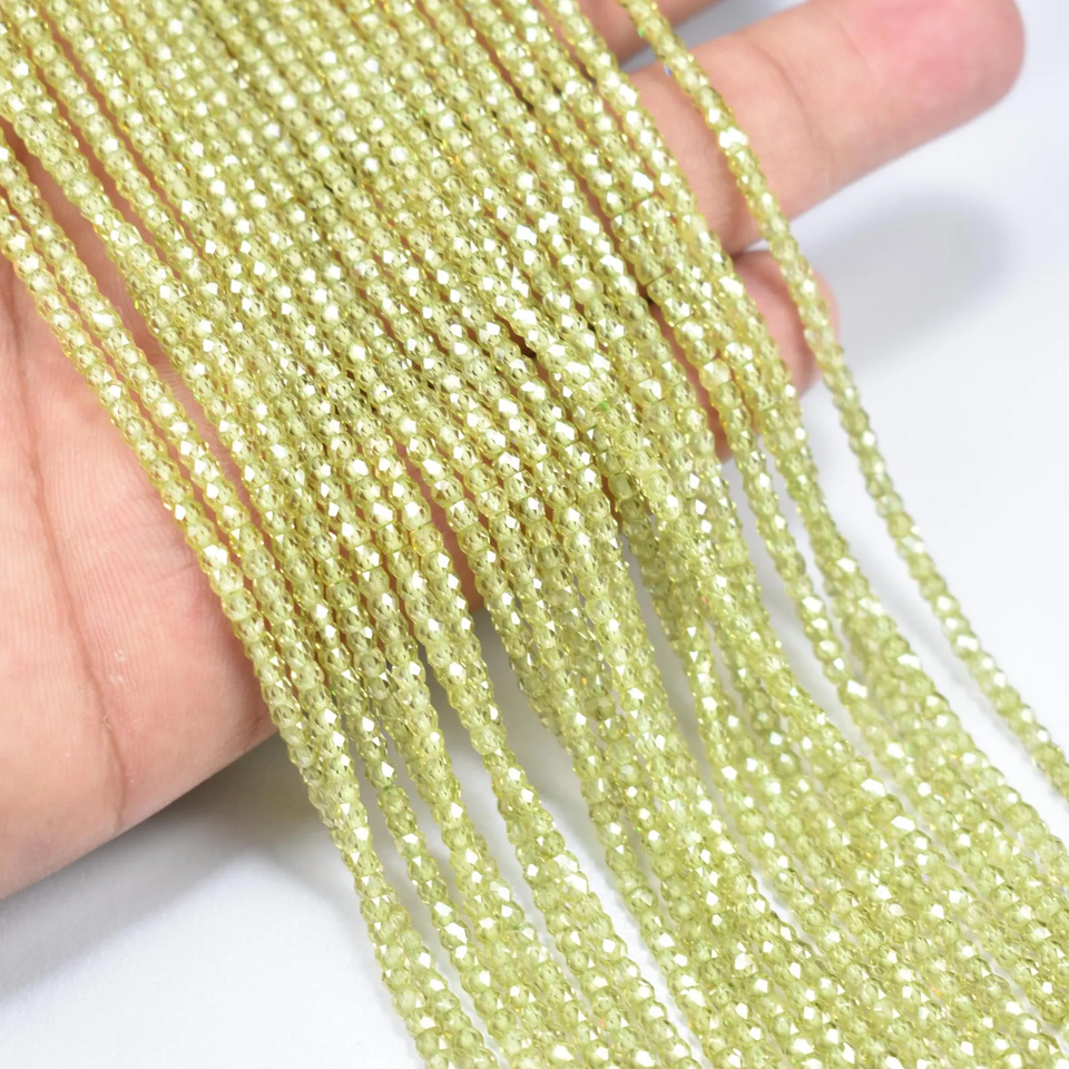 Cuentas Redondas de Circonita Cúbica Verde Claro, Cuentas Facetadas de Circonita de 2.5mm, Hilo de Cuentas de 13 Pulgadas para Collar, Piedra Preciosa Curativa