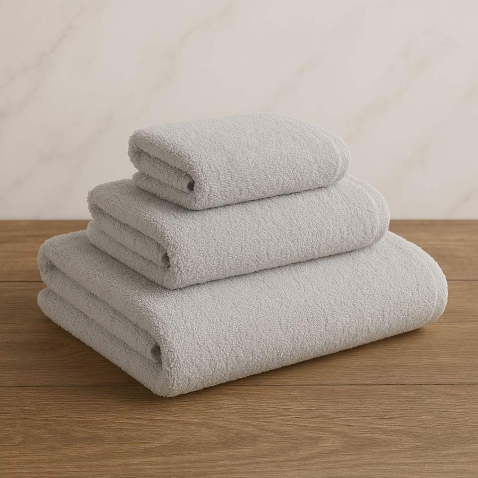 Toalla de Baño Gris Claro 100% Algodón Orgánico Certificado GOTS Suave Afelpada Absorbente de Secado Rápido Ecológica de Lujo Calidad Spa