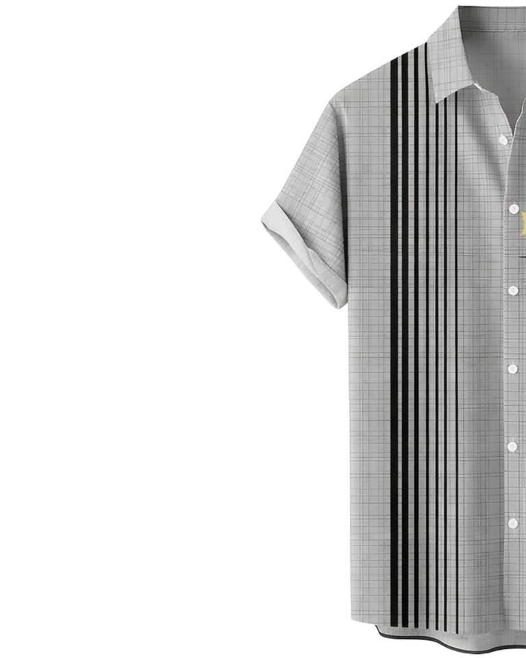 Camisa de Manga Corta con Botones y Estampado Geométrico Retro Gris Claro, Ropa Casual de Verano para Hombre, Fabricante OEM, Suministro al por Mayor
