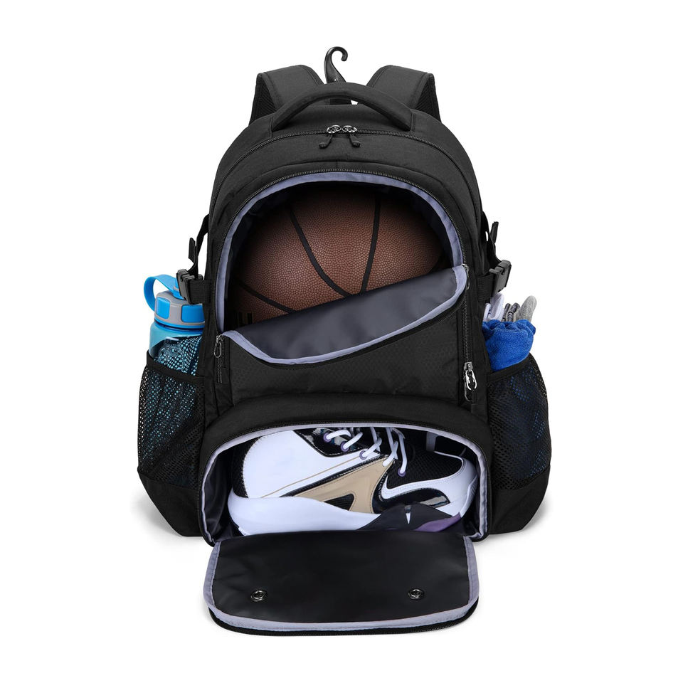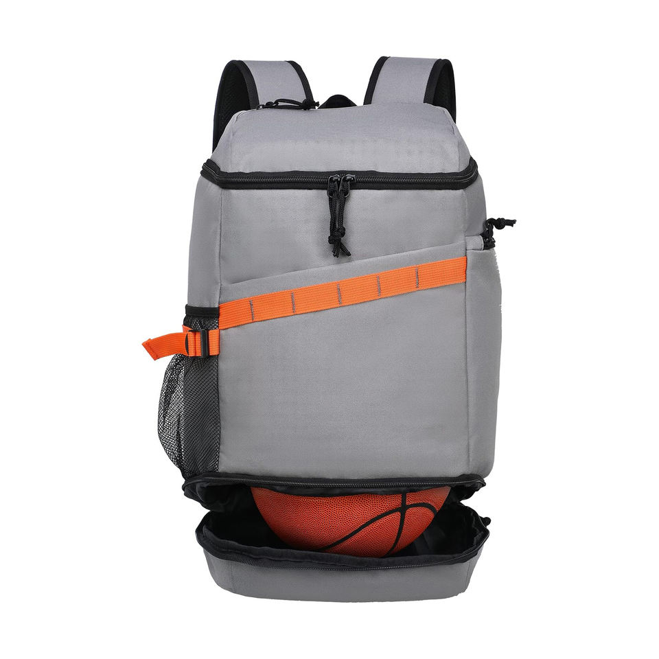 Mochila Deportiva Gris Claro con Correa Utilitaria Naranja en Contraste, Compartimento Inferior para Balón y Gran Capacidad Interior