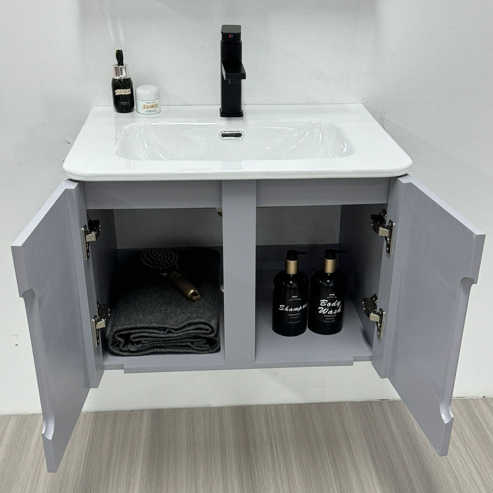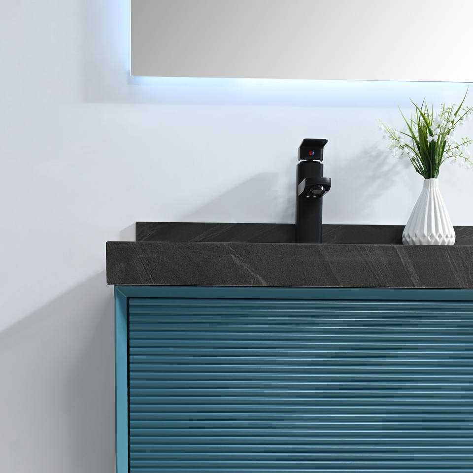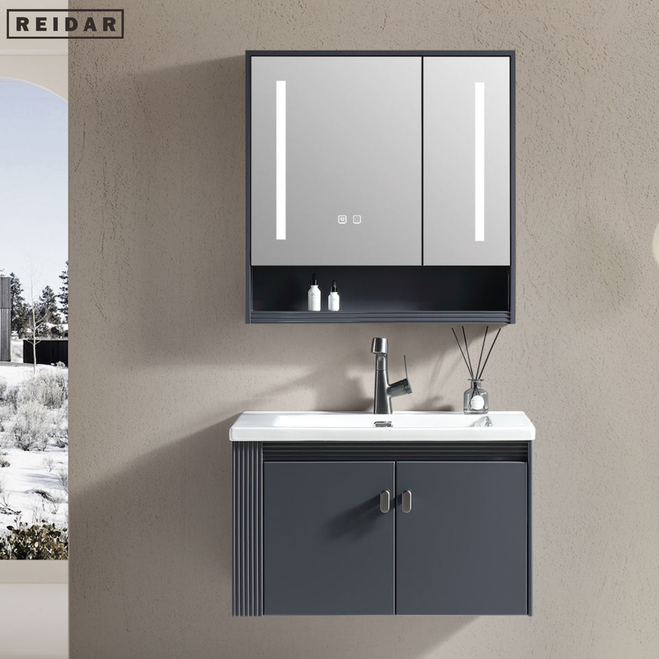 Lavabo individual de PVC personalizable de lujo ligero para tocador de baño, colgante de pared, espejo inteligente de estilo moderno, conveniente lavado Ba